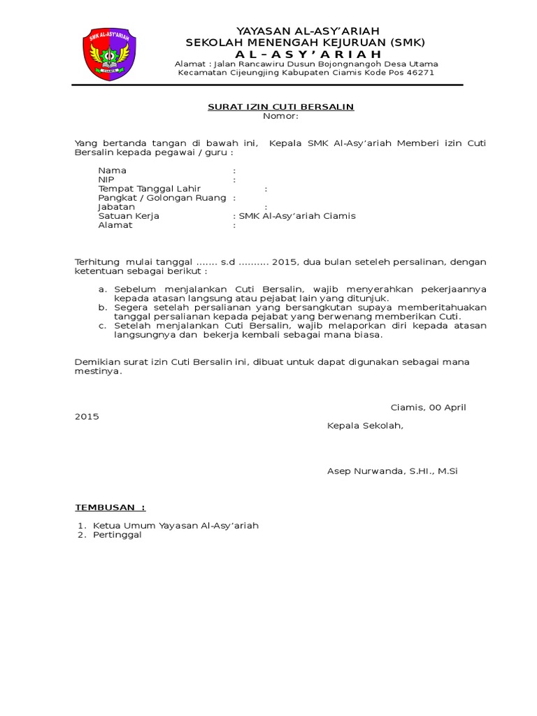Contoh Surat Cuti Bersalin / Contoh surat keterangan cuti melahirkan kumpulan ilmu dan.