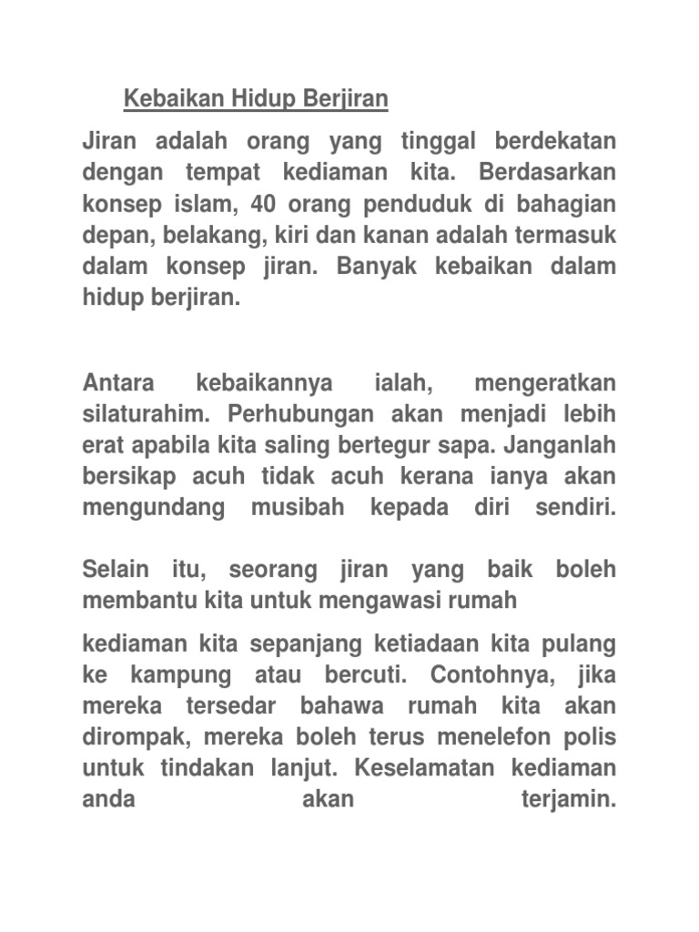 Kepentingan Hidup Berjiran / Contoh karangan pentingnya semangat berjiran dalam mengukuhkan perpaduan penduduk.