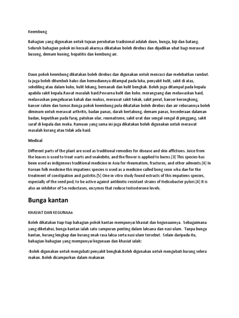 Khasiat tanaman ini adalah untuk mengobati bengkak pada kaki dan tangan, obat borok, obat luka, peluruh keringat, peluruh muntah, pembengkakan kelenjar limpa pada selangkangan dan ketiak, peluruh kencing, patek (frambusia) dan reumatik. Merupakan sejenis tumbuhan daripada keluarga fabaceae (leguminosae). Bunga kecombrang atau biasa juga dikenal dengan nama bunga siantan atau honje, di negara jiran malaysia dikenal dengan nama bunga kantan, memiliki nama latin etlingera elatior, sinonim lainnya adalah nicolaia elatior. Petua kegunaan bunga dan pokok bunga kantan. Pinang sudah sangat populer di indonesia karena memang jenis buah ini sangat mudah ditemukan. Simak selengkapnya di artikel ini! Bunga kantan juga dikenali sebagai bunga siantan. Daun berkhasiat untuk memar, bisul, darah haid banyak, bau badan, dan diare. Daunnya tirus dan panjang seperti daun pokok lengkuas. Kami juga akan huraikan khasiat pokok bunga. Bunga kitolod memang memiliki sejumlah khasiat. Sebagaimana yang diketahui, bunga kantan ialah satu campuran penting dalam. Bunga berkhasiat untuk perut kambung, sukar menelan, batuk, pusing, dan mempercepat persalinan.