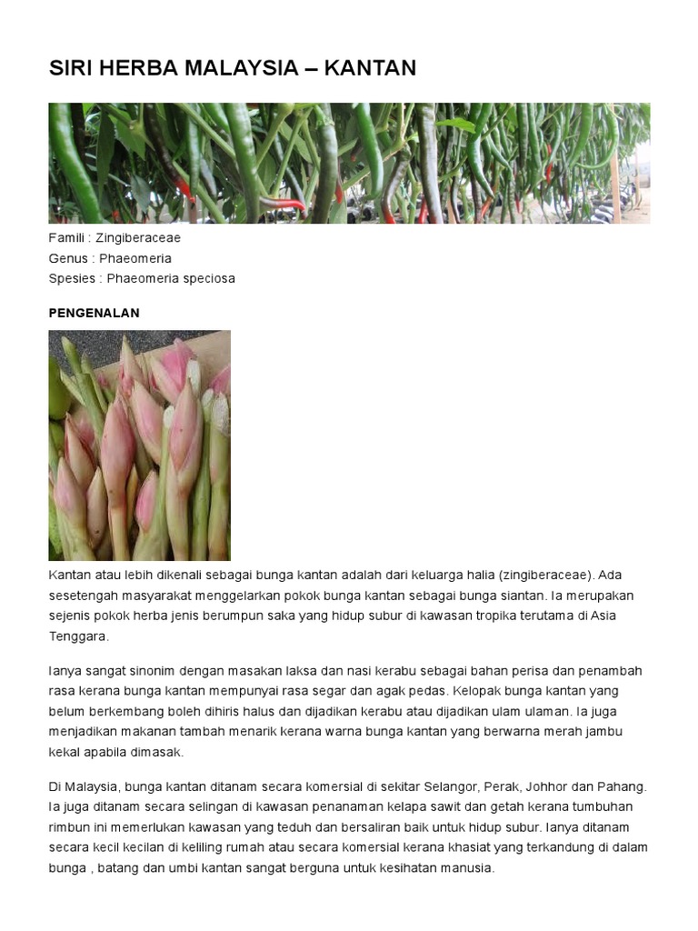 Sebagaimana yang diketahui, bunga kantan ialah satu campuran penting dalam. Bunga cantik berwarna biru yang sering dijadikan teh ini dapat dikonsumsi untuk mengusir beberapa penyakit. Selalunya jambak bunga kantan yang masih muda dan belum mengembang merupakan perencah utama untuk membuat kuah laksa yang selalunya di sebalah utara. Anim agro technology kantan kenapa harga tinggi sumber animhosnan.blogspot.com. Terkenal kerap tumbuh di area pemakaman, bunga yang satu ini punya nama lain yakni cempaka putih. Nah, untuk itu kamu juga mesti paham mengenai khasiat pinang. Ia merupakan sejenis pokok saka herba. Kami juga akan huraikan khasiat pokok bunga. Pokoknya menegak dengan batang hijau yang lurus. Petua kegunaan bunga dan pokok bunga kantan. Di sejumlah daerah pada malam jumat kliwon, penjualan bunga ini pasti akan naik harganya dari hari biasa. Pelbagai khasiat ada pada bunga kantan. Sinonim botani termasuk nicolaia elatior, phaeomeria magnifica, nicolaia speciosa, phaeomeria speciosa, alpinia elatior, dan alpinia magnifica.