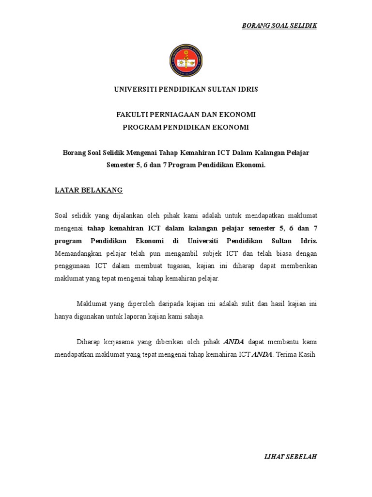 Related : Contoh Borang Soal Selidik Pdf - Borang Soal Selidik Sistem Pengangkutan PT3 - IDEA TERKINI / We are a sharing community..